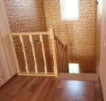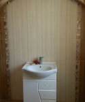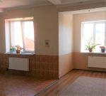 Имеется цокольный этаж с гаражом, бойлерной, кладовой и большой комнатой.