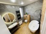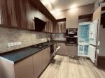 Бытовая техника: плазменный телевизор, газовая плита, микроволновка, духовка электрическая, холодильник, вытяжка, посудомоечная машина, электрочайник, стиральная машина в санузле, пылесос, кондиціонер;