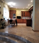 В большей части дома: на первом этаже - кухня-гостиная с выходом на террасу, санузел.