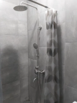 Два входа - в отдельную комнату на первом этаже, в которой сделан евроремонт, оборудована зона кухни, спальни и санузел. Установлен кондиционер, заведен интернет. Есть выход на террасу со ступенями в море.