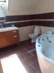 В доме на первом этаже большая гостиная, санузел, кухня, (Теплые полы в коридоре, санузле и кухне), на втором этаже три спальни и санузел.