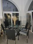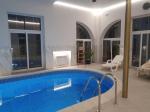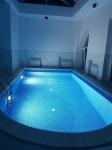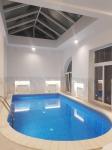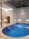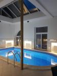-Отдельно стоящий отапливаемый бассейн с сауной, панорамными окнами, современной системой фильтрации, обеззараживания и противотоком; подогрев воды — тепловой насос;