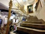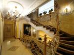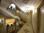 Из гостиной поднимается авторская лестница на второй этаж, выполненная из гранита по индивидуальному заказу.