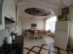 Первый этаж с большой гостиной, зоной отдыха, гостевым санузлом, большой светлой кухней с панорамными окнами и входом на просторное крыльцо. Из гостиной есть лестница, по которой можно спуститься в цокольный этаж. Все пространство цокольного этажа спланировано с условиями полезного использования площади. Там располагаются бильярдная (борта, ноги: Ольха, лузы – сетка с кожаным фартуком, сукно – Турция, игровое поле: натуральные плиты – ардезия, шары из натуральной слоновой кости), тренажерная, кладовая, котельная и запасной выход.