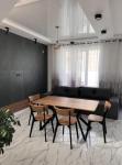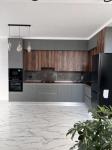 Полностью оборудована кухня-студия, со встроенной техникой (духовая печь, микроволновая печь, плита, холодильник).