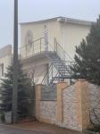 Трехэтажный дом из ракушечника. Три этажа и подвал 14,4 м кв. Первый этаж - гараж 23м кв, санузел, коридор 13,4 м кв и кухня-гостиная 64,7 м кв.
