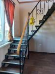 На 1-м эт- две комнаты. одна с действующим камином (на дровах). кухня-столовая, санузел, душ, бойлер, прихожая.