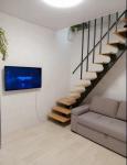 На втором – две отдельные светлые комнаты с балконом – все помещения с окнами, наполнены естественным светом