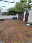 Большой двор выложен плиткой.