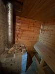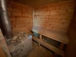баня из сруба, зона барбекю под навесом, гараж с подвалом на всю площадь, хозпостройки, летний душ и туалет, место для хранения дров.