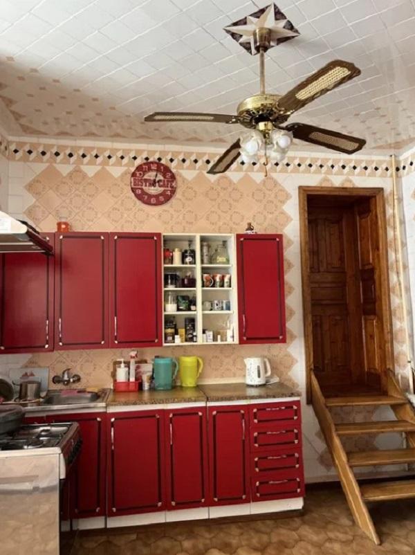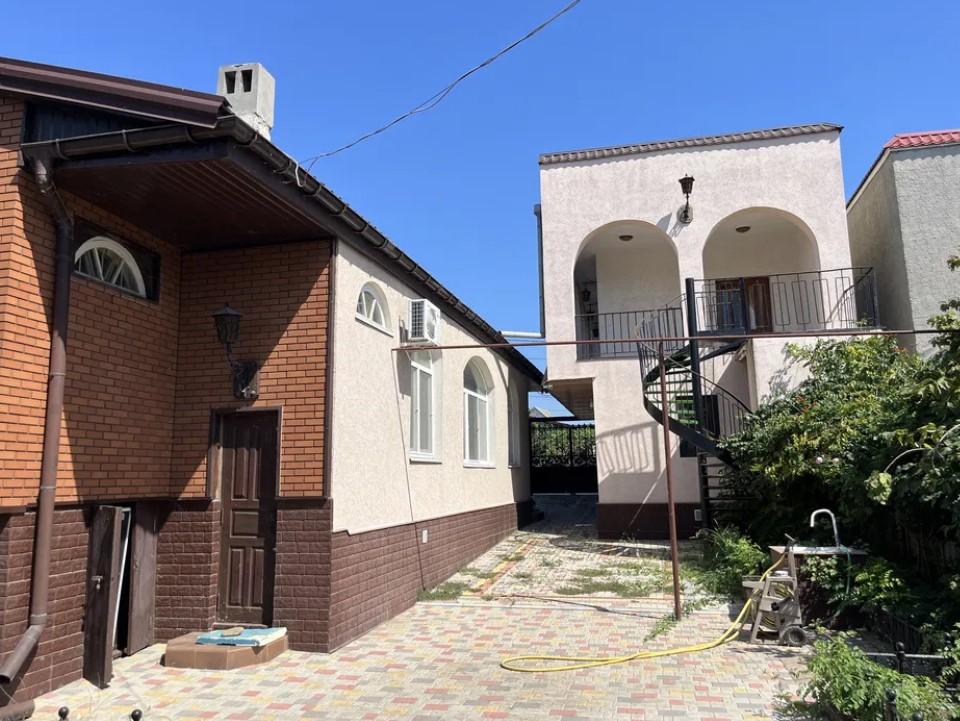дом построен из ракушечника, имеет высокий цоколь и подвал под кухней. Также есть полуподвал в летней кухне.