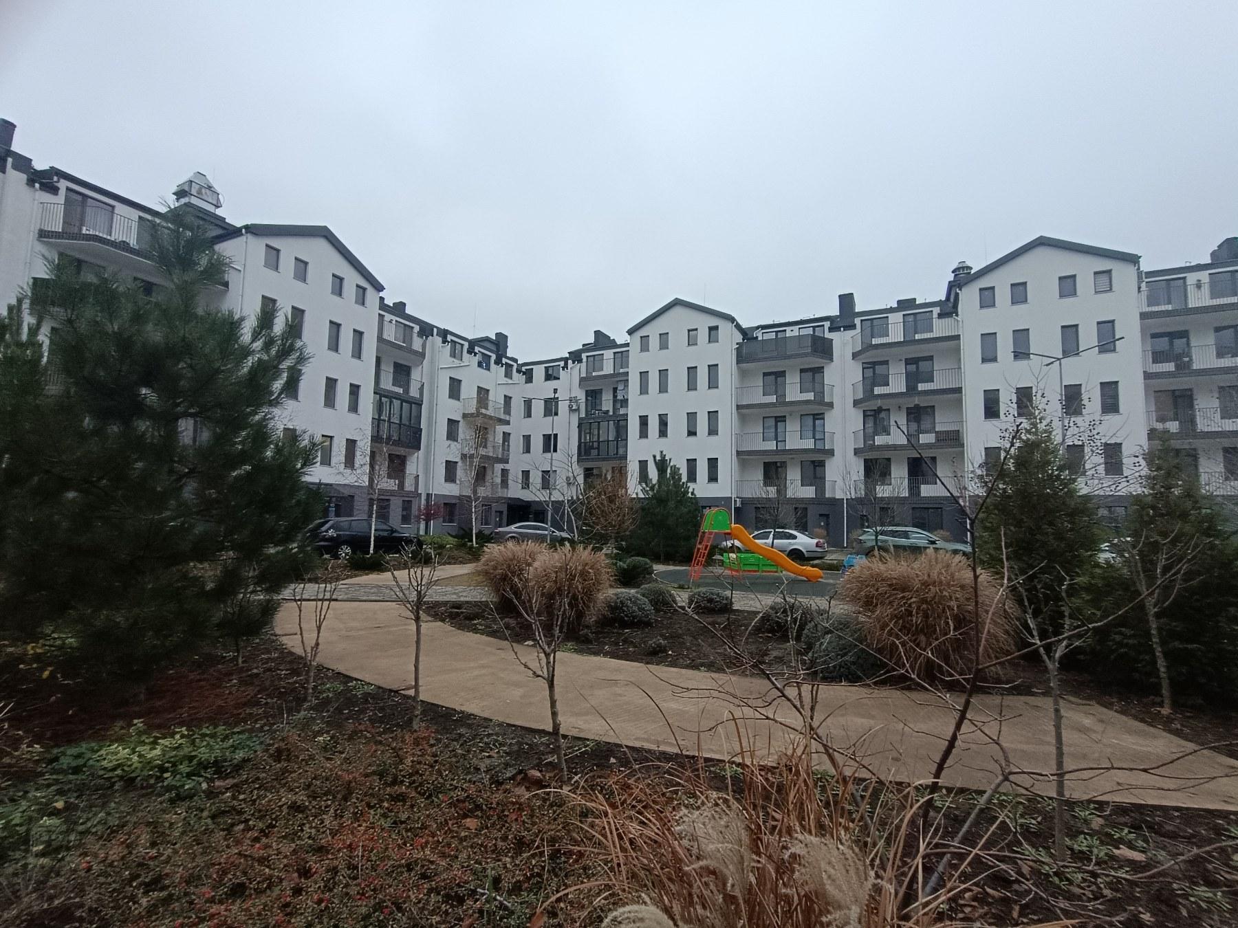 Новый малоэтажный комплекс с благоустроенной территорией, детскими площадками и зеленой зоной отдыха.