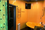 Ванна выполнена из искуственного камня, также есть дополнительный светящийся фонтан.