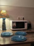 Побутова техніка: телевізор, газова плита, пральна машина на кухні;