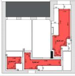 Площадь квартиры 63,5 кв м Сделана небольшая перепланировка, установлены перестенки -