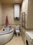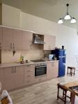 Просторная кухня почти 18 кв.м., коридор 14 кв.м. Выполнена перепланировка , отдельная спальня и вторая комната кабине, без окна .