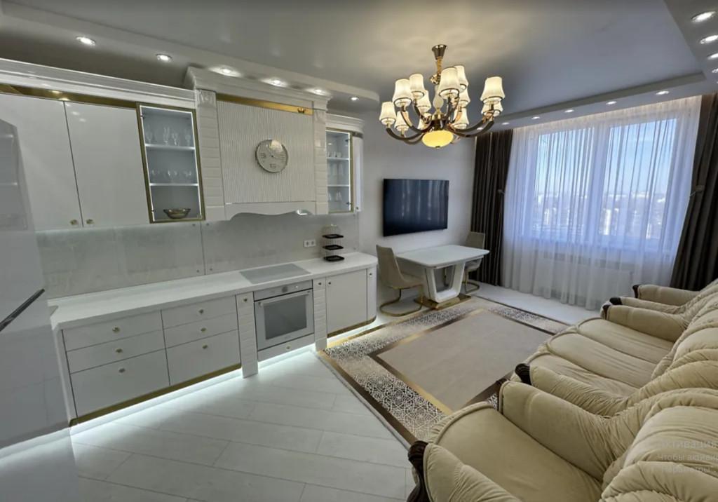 Этаж 22/23. Жилая площадь - 65 м², кухня - 15 м². Квартира бизнес-класса. Планировка раздельная, ремонт в светлых тонах.