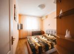 Планировка включает четыре отдельные комнаты: просторная гостиная с раскладным угловым диваном, уютная спальня, детская или кабинет, а также отдельная гардеробная, которую можно использовать как дополнительную спальню.