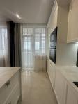 Просторная кухня-студия и две отдельные комнаты. Ремонт выполнен в светлых тонах, имеется мебель и бытовая техника.