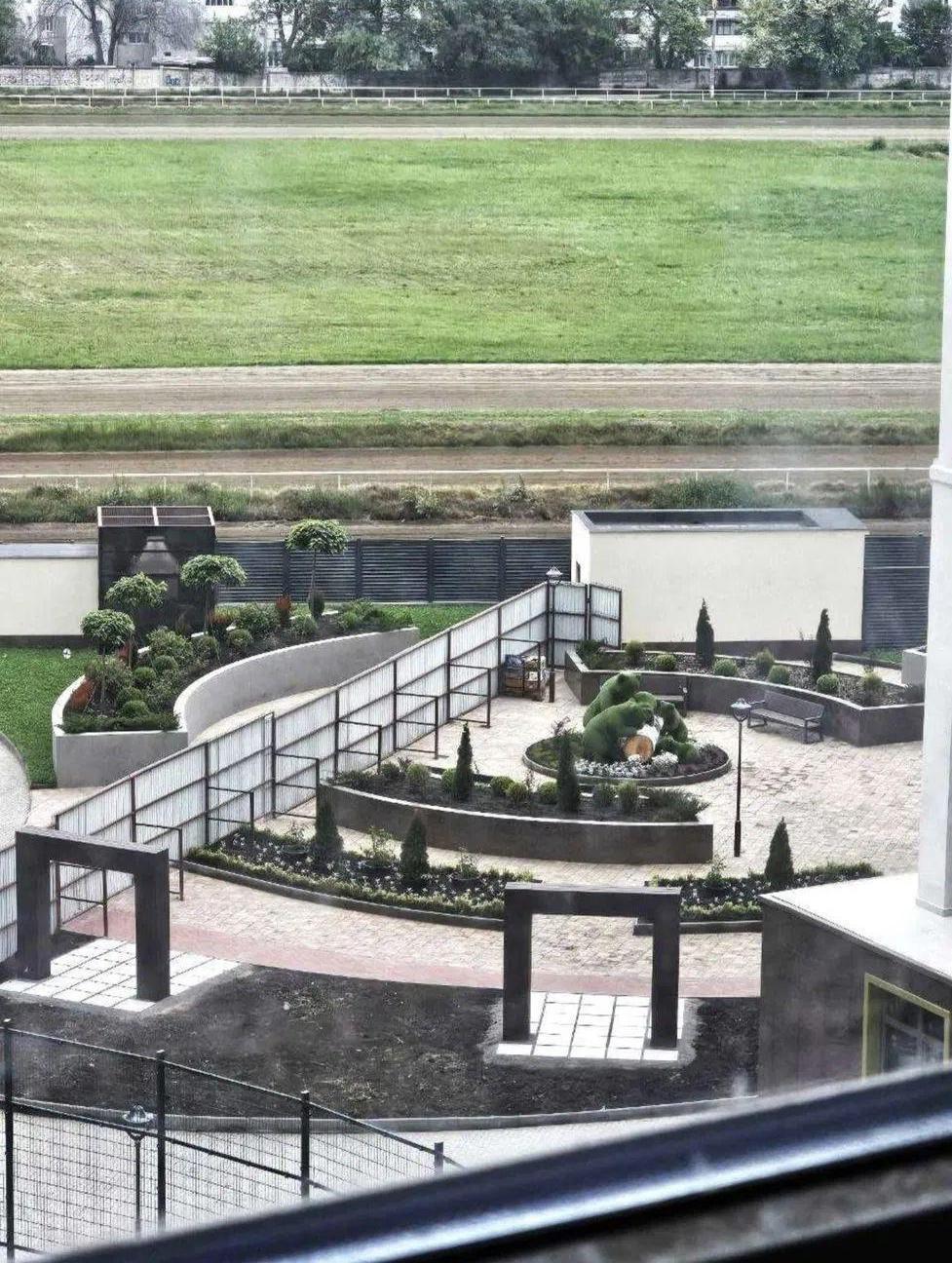 Из окон открывается вид на улицу Краснова и уютный двор с фонтанами.