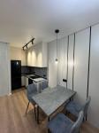 Квартира с новым ремонтом, выполненным в современных нейтральных тонах.