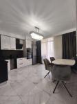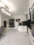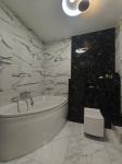 Для комфортного проживания квартира перепланирована в две раздельные и просторные спальные комнаты ( в одной гардеробная), кухню- студию с выходом на балкон, вместительную гардеробную в холле и два санузла.