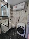 Санузел оборудован двумя душевыми лейками, благодаря чему вы можете принимать душ совместно. В санузле есть: стиральная машина, бойлер, полотенцесушители.Зона рабочего кабинета с панорамным остеклением и боковым видом на море, обеспечит не только приятную атмосферу для онлайн-работы или просмотра любимых фильмов, но и позволит заниматься йогой, не выходя из дому в индивидуальной зоне комфорта, отделенной от основного пространства стеклянными, раздвижными перегородками.