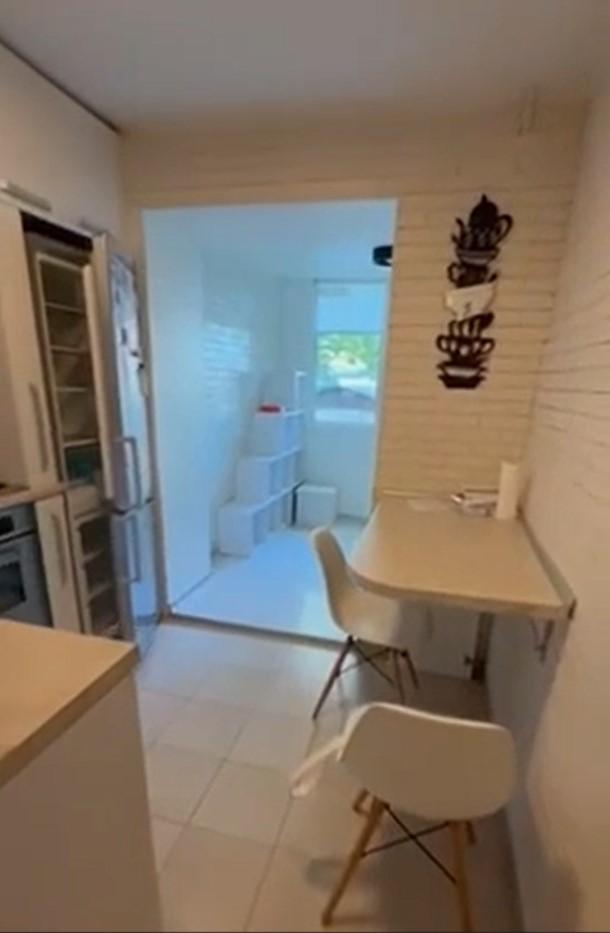 Сделан большой пристроенный балкон - 10 кв.м. - выполнен ремонт, теплые полы - можно использовать как комнату.