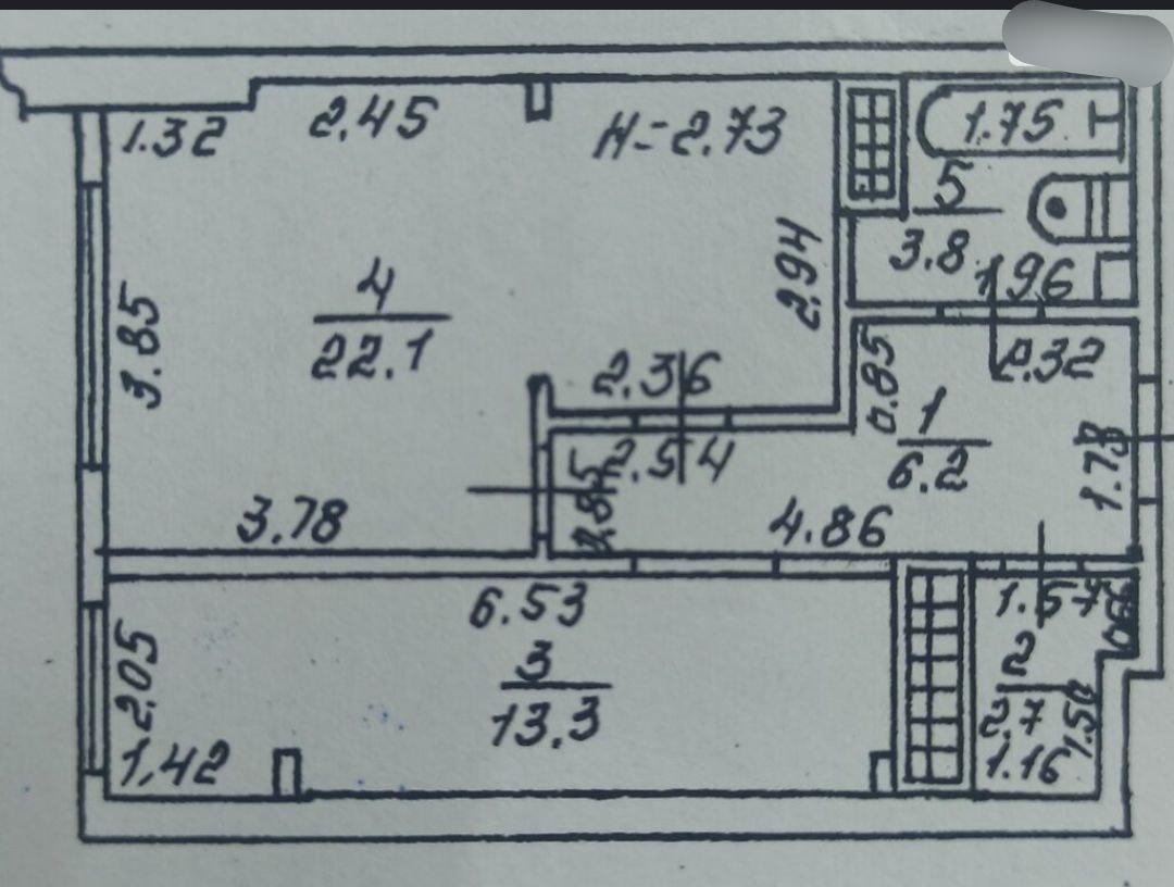 Общая площадь составляет 48 м², жилая — 22 м². Просторная кухня — 13 м². Квартира находится на 15-м этаже 16-этажного дома.