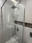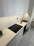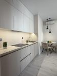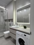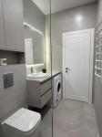 Кухня оснащена современной техникой, а ванная комната оформлена с использованием стильной сантехники и аксессуаров.