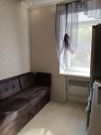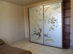 В комнате установлен вместительный шкаф-купе и удобный раскладной диван, который легко превращается в полноценное двуспальное место.