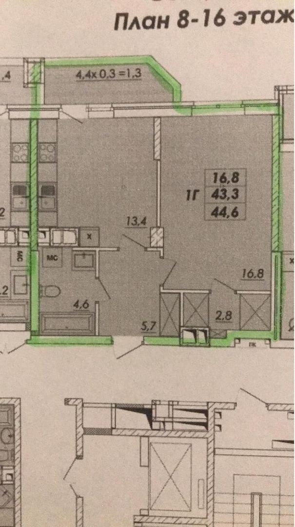 Предлагается к продаже однокомнатная квартира общей площадью 45 м² в современном ЖК Real Park.