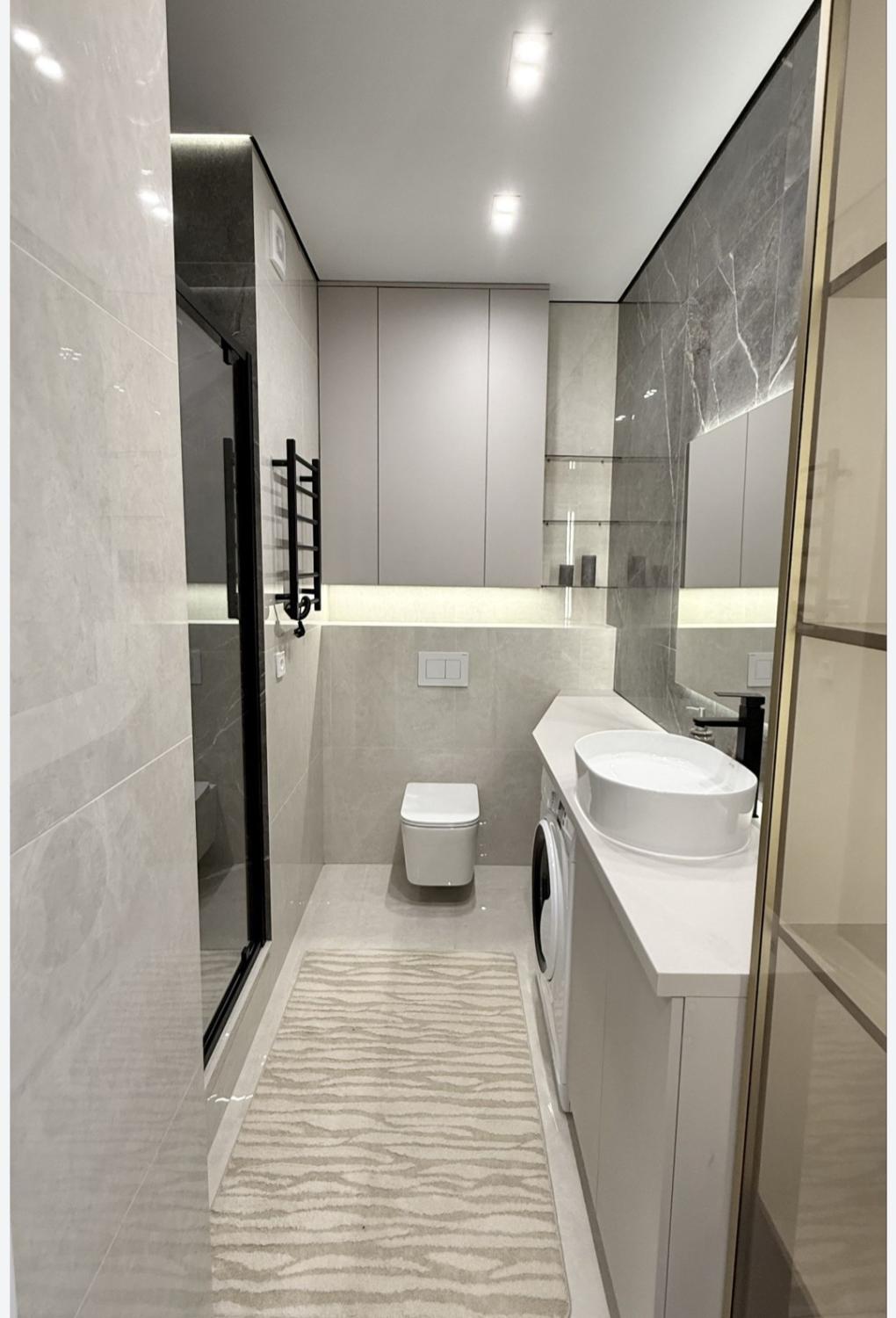 Побутова техніка: телевізор, варильна панель, мікрохвильова піч, духовка електрична, холодильник, витяжка, посудомийна машина, пральна машина в санвузлі;