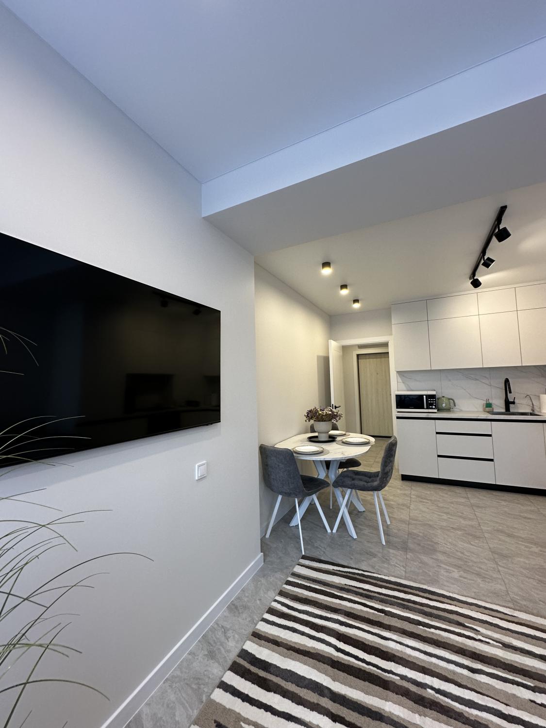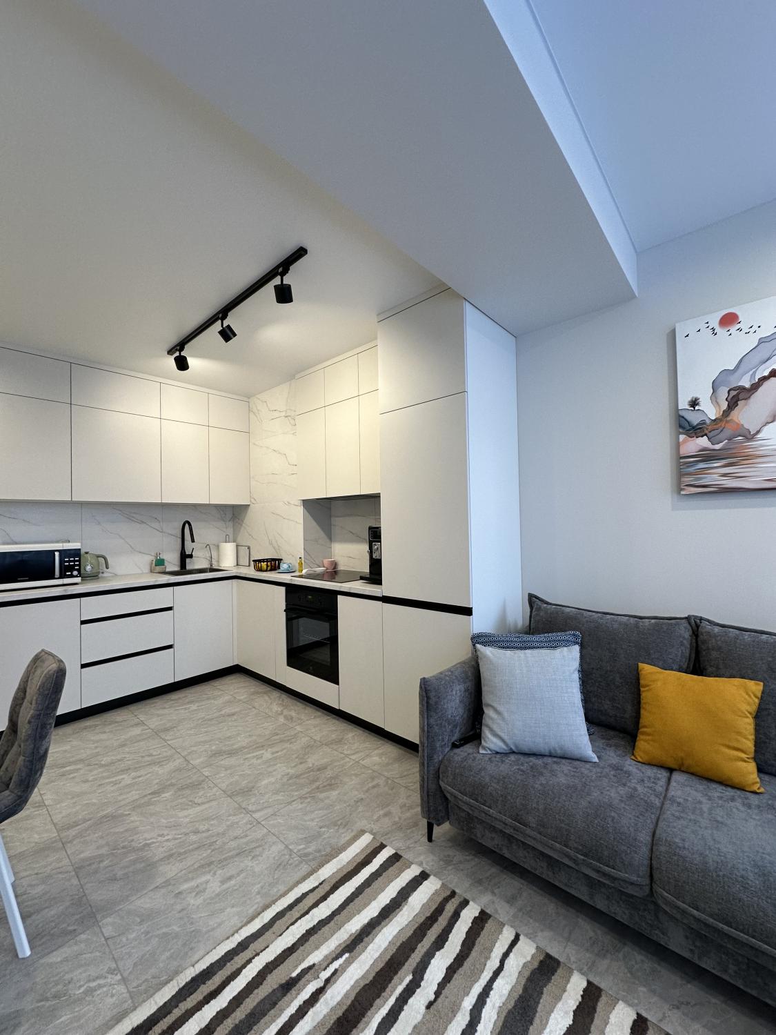 Квартира расположена в новом доме с качественным строительством и продуманной планировкой. Светлая и уютная комната создает атмосферу уюта и комфорта. Просторная кухня-гостинная с зоной для отдыха.