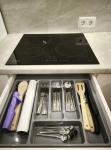 Квартира расположена в цокольном этаже 25-этажного элитного комплекса, но при этом она совсем не тёмная — наоборот, в ней удивительно светло и уютно. Небольшие окна выходят во двор, и сквозь них в комнаты проникает приятный уличный и солнечный свет, создавая ощущение простора и комфорта. В квартире выполнен красивый дизайнерский ремонт, продуманный до мелочей.