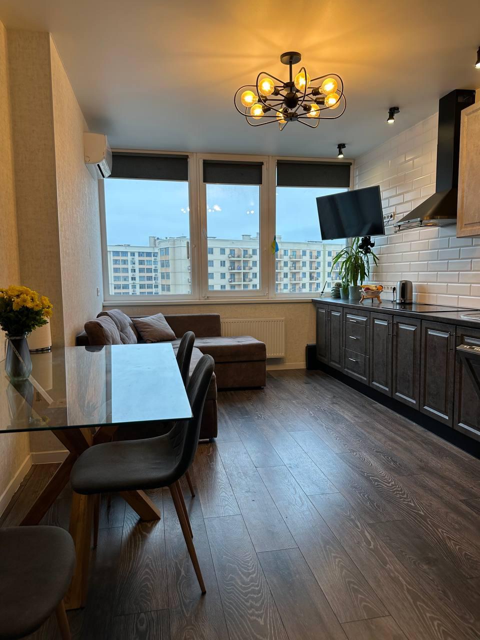 Побутова техніка: телевізор, електроплита, мікрохвильова піч, холодильник, витяжка, посудомийна машина, кондиціонер;