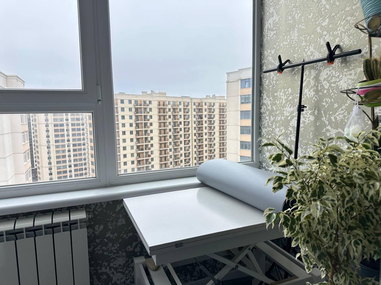 • Лоджия при спальне оборудована под кабинет.