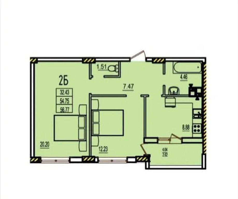 - 2 отдельные комнаты (20,2 м2 и 12,23 м2)
