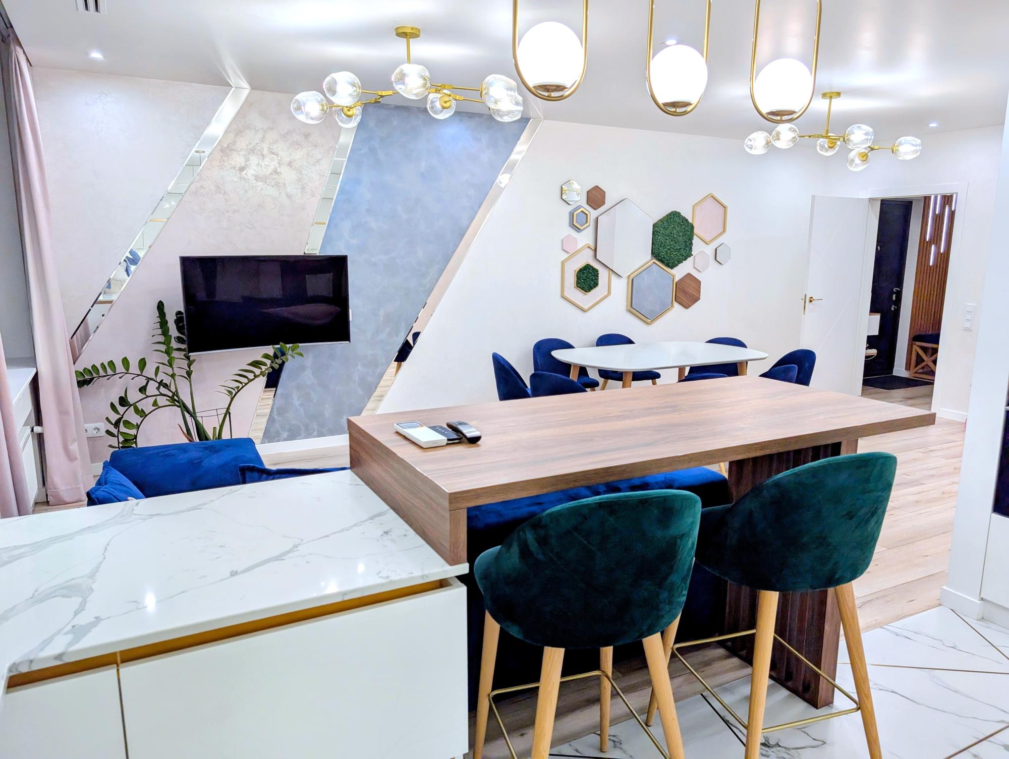 У квартирі виконано дорогий авторський ремонт, використані якісні матеріали та техніка провідних світових брендів. Повністю укомплектована меблями — усе залишається новим власникам.