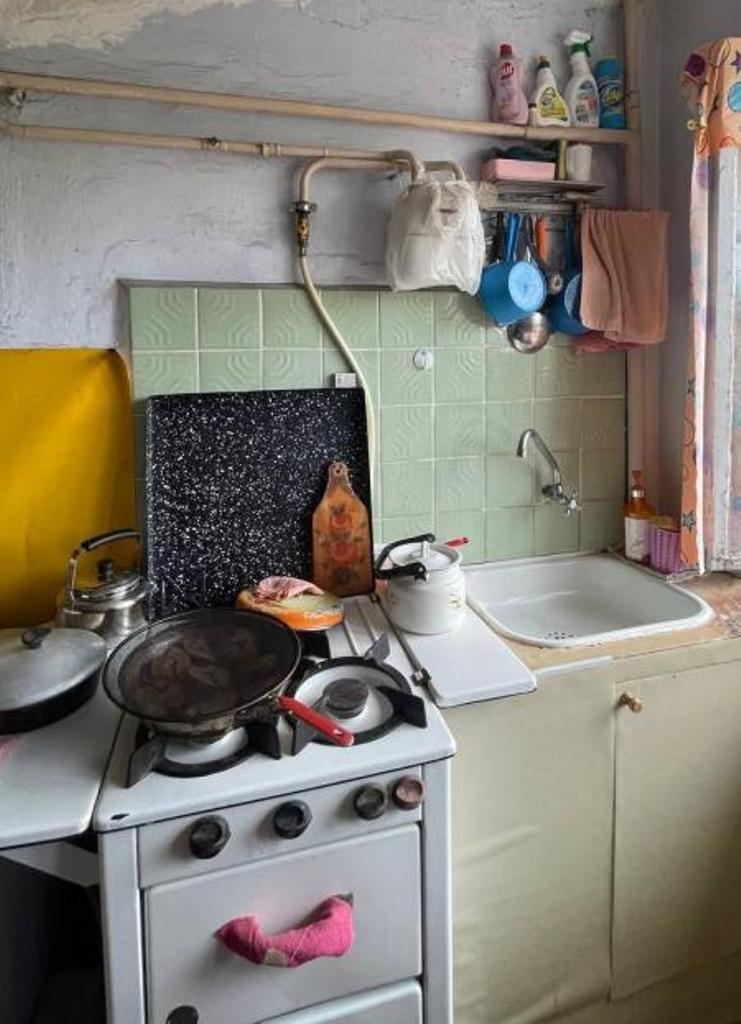 Свое место на кухне. Душ и туалет - общие. Бойлер и умывальник в комнате. Вся мебель остается. Возле комнаты шкаф-кладовка. Практически проживает один человек. Рядом клиники, школа, детский сад, магазины. Хорошая транспортная развязка. Торг уместен.