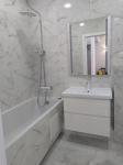 Санузел полностью укомплектован современной сантехникой: ванна, бойлер, раковина с тумбой, зеркало с подсветкой, унитаз с инсталляцией, стиральная машина.