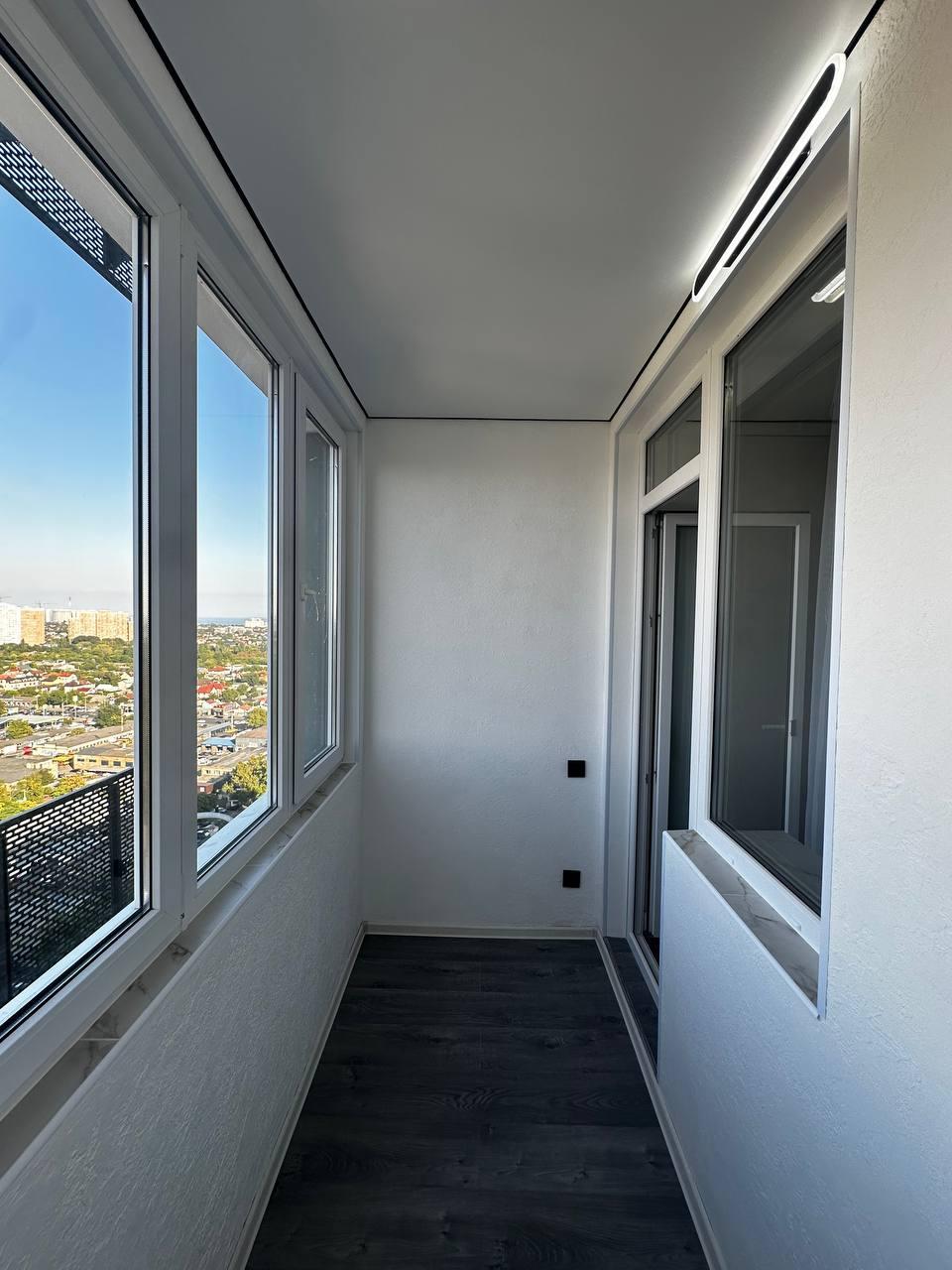 Балкон отделанный декоративной штукатуркой, устойчивой к влаге.