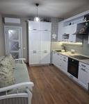 Квартира с капитальным евроремонтом, светлая, комфортная для проживания. Распланирована в две отдельные комнаты и кухню-студию. Из кухни выход на балкон. Из спальни гардеробная.