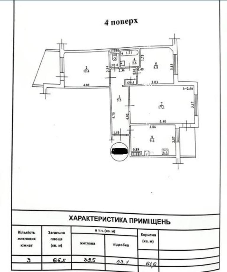 Квартира под ремонт, расположена на 4/9 этаже, общей площадью 66 кв.м.