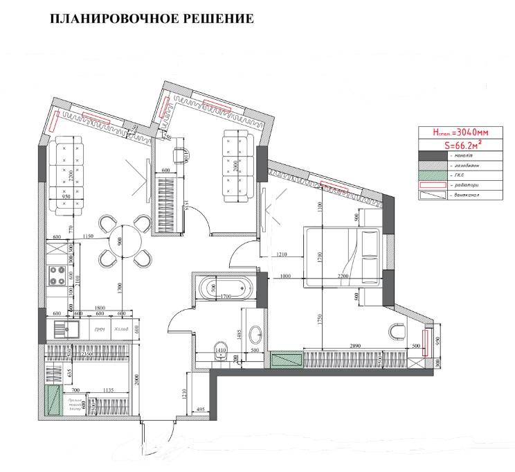 В санузле и кухне-гостиной в зонах с плиткой оборудованы тёплые электрические полы.
