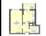 Общая площадь 33.18м2. Раздельная планировка с кухней 8.3 м2, спальня 15 м2.