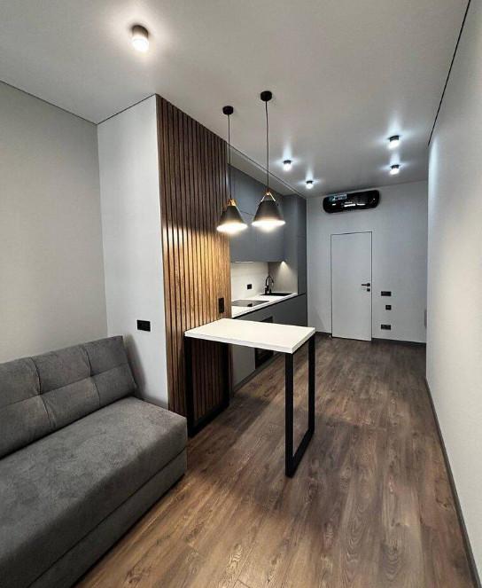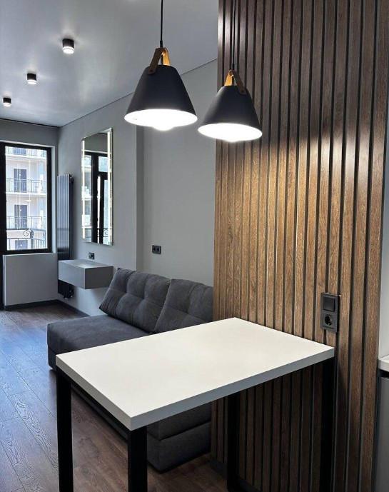 Общая площадь — 30 м², потолки 3 метра — много воздуха и света. Выполнен качественный капитальный ремонт. Полностью укомплектована мебелью и техникой — всё остаётся. Продуманная планировка, формат смарт-квартиры. Современный, стильный интерьер.