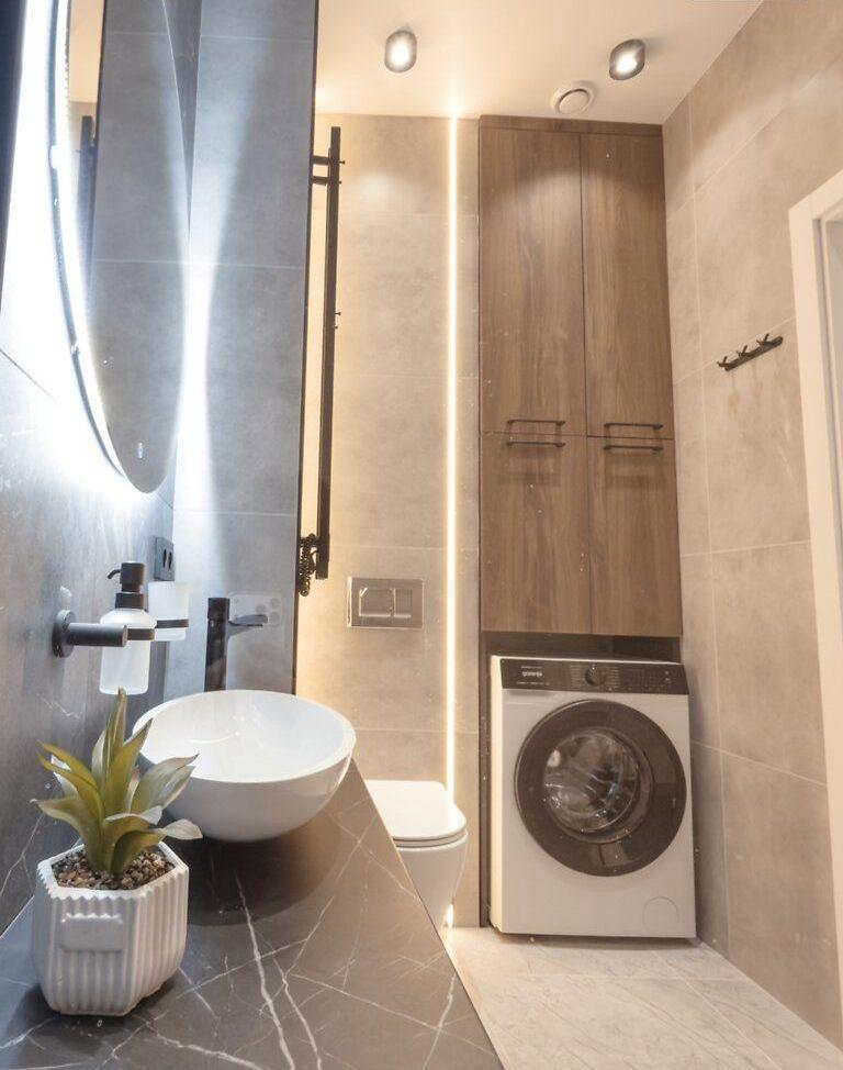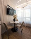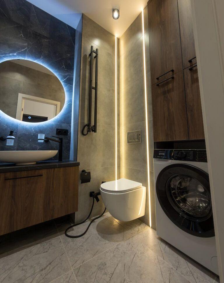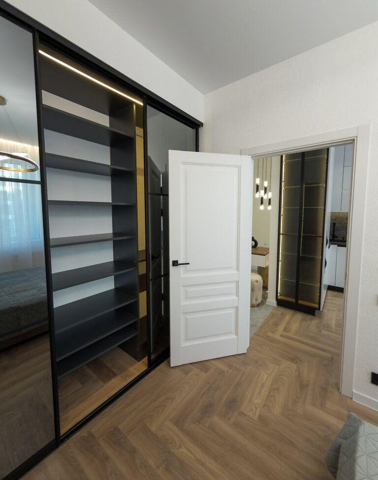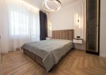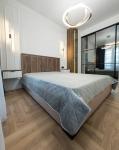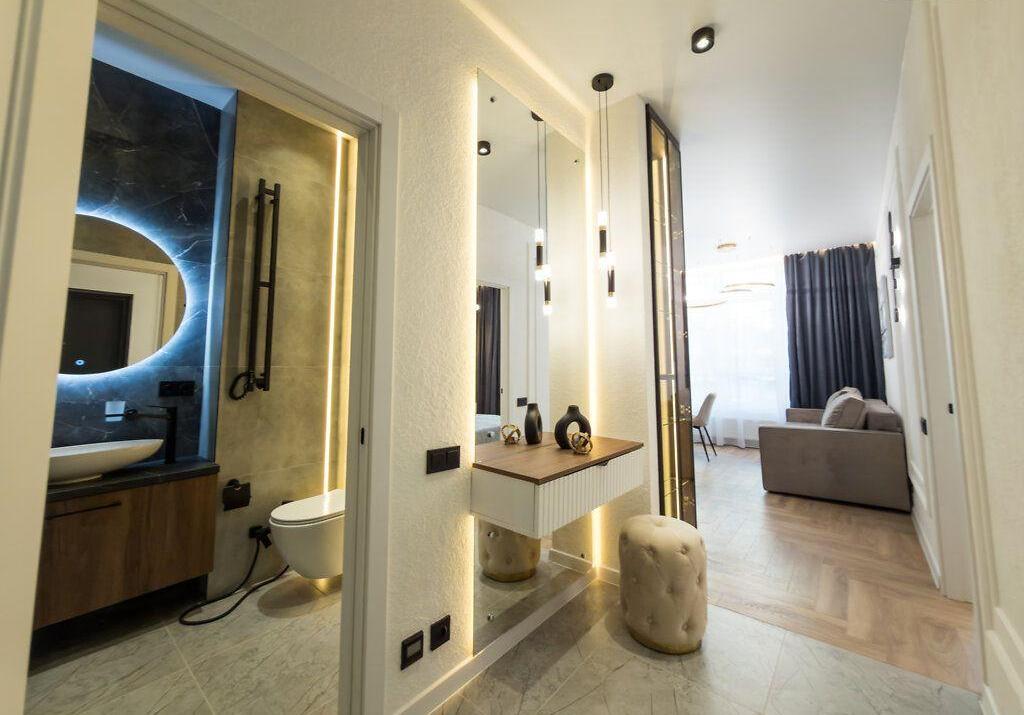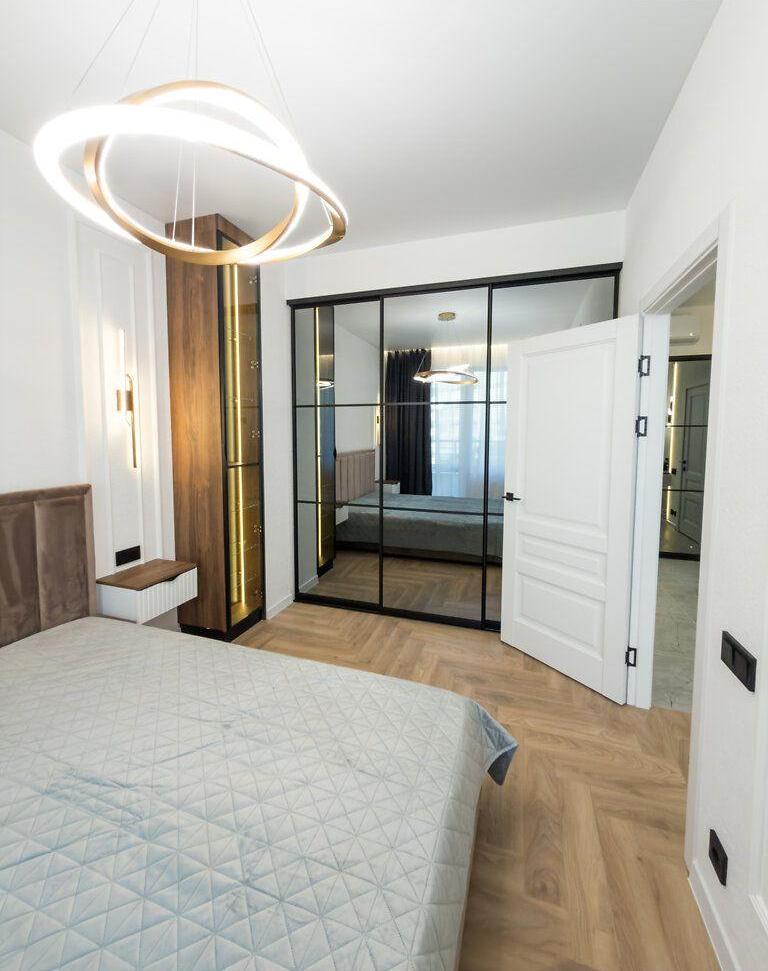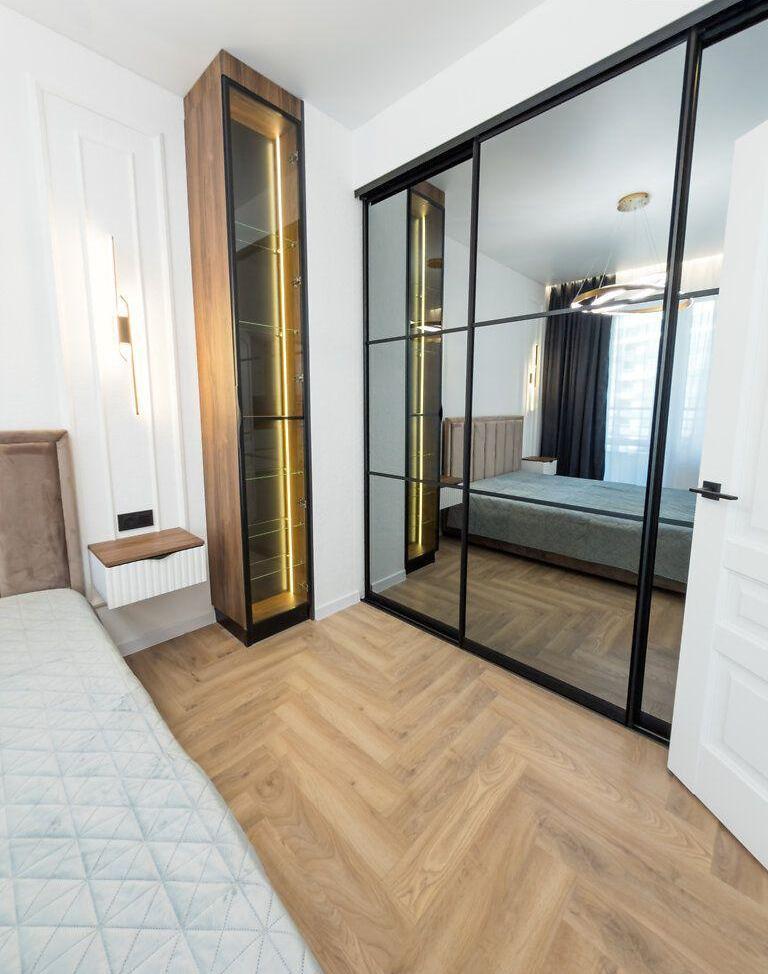 Квартира выполнена в современном стиле с использованием качественных материалов.