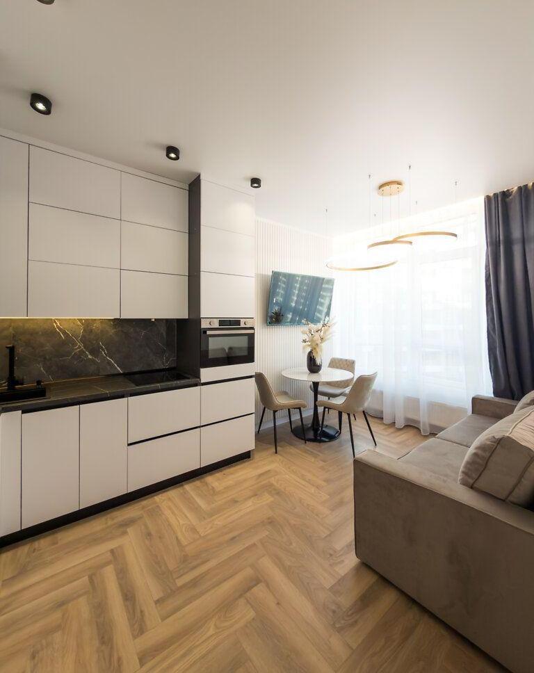 Светлая цветовая гамма, продуманная эргономика пространства, уютная кухня и комфортная жилая зона создают атмосферу уюта и премиальности.