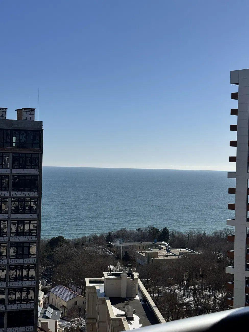 Квартира расположена на 19 этаже, откуда открывается впечатляющий вид на море и город.